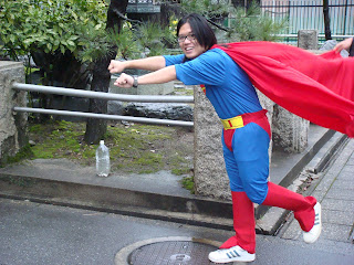 yea, everyone was required to wear those fancy or i should call it 'funny' costum prepared by the school... act, i was not suppose to wear this custom, but ermm my friend couldn't make at the last hour, so i wear his la... hehe... :P and yea, i wore the custom for the whole afternoon, walking around the street like a mad person, telling people this and that... luckily, the japs here were friendly enough to wave at me and the team...
